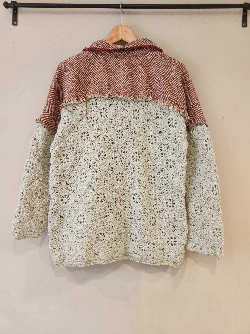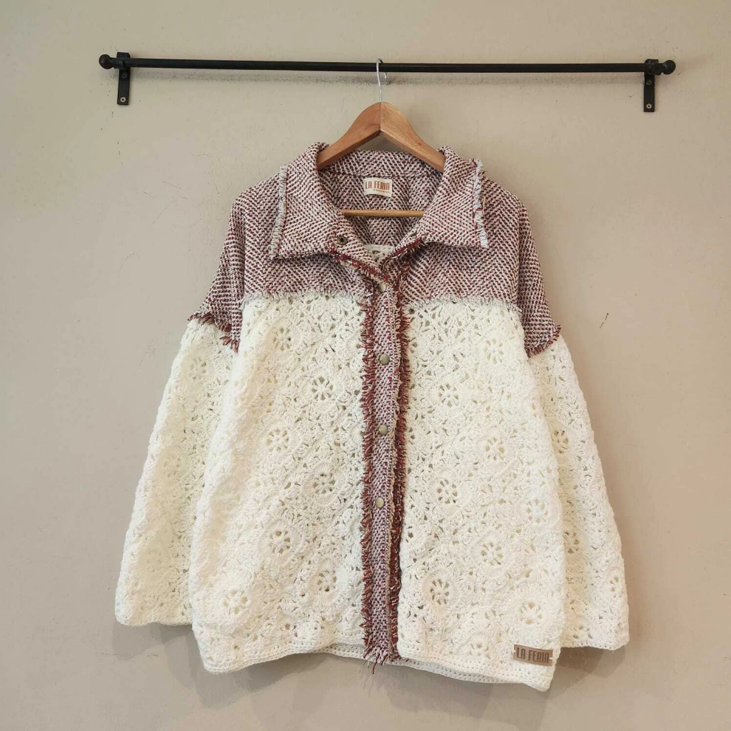 Elaborado artesanalmente a crochet, este camisaco es ideal para lucir un estilo único y moderno.