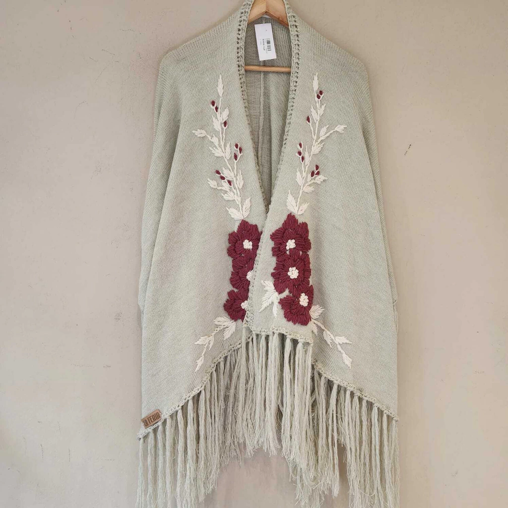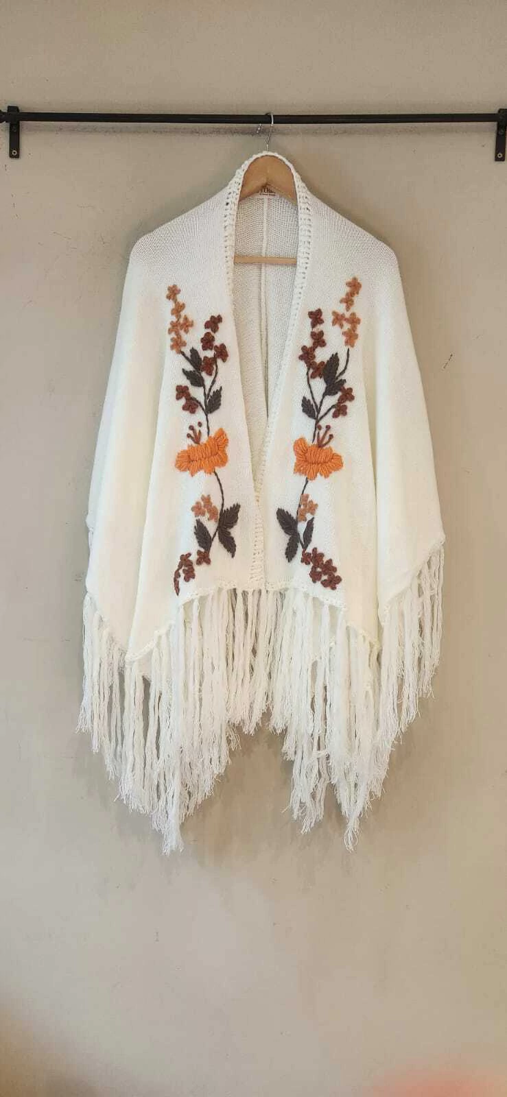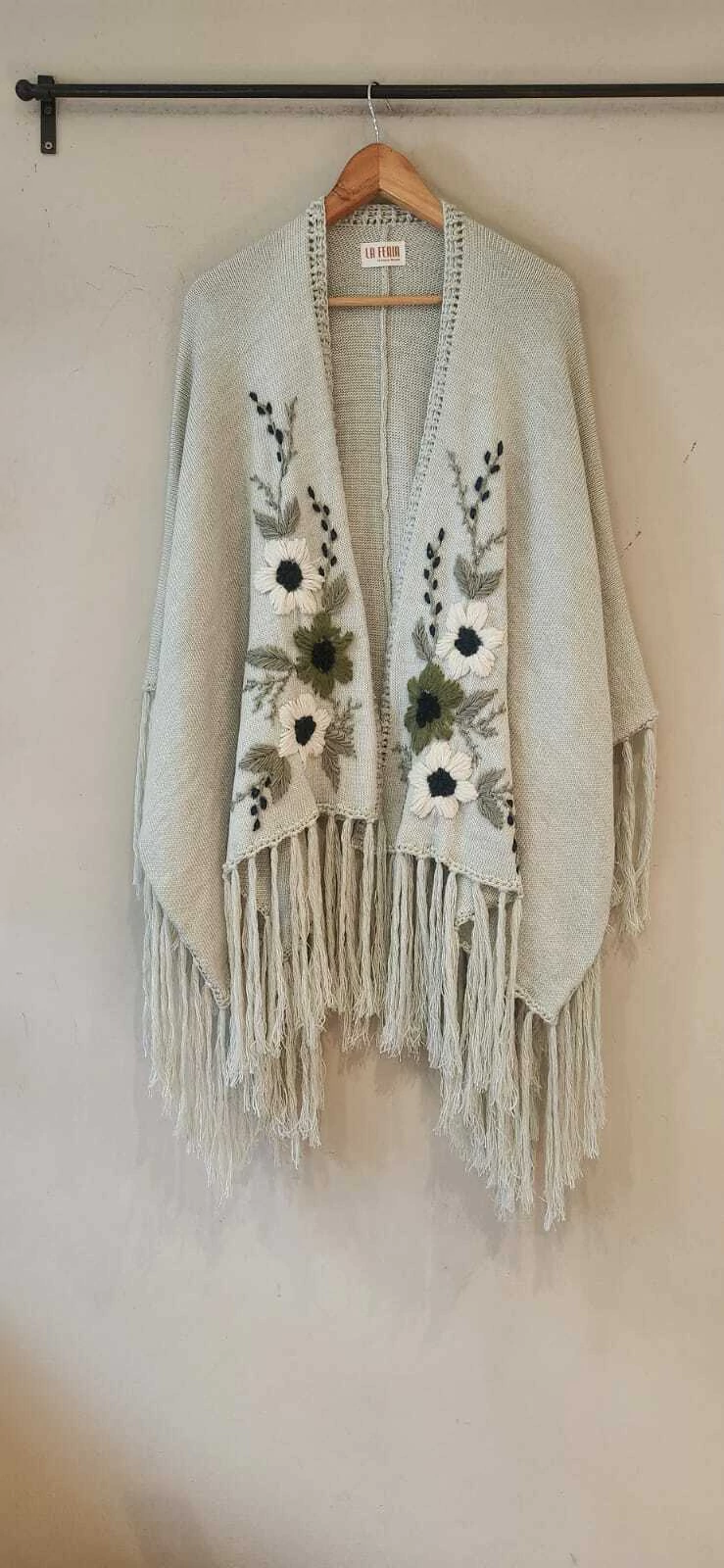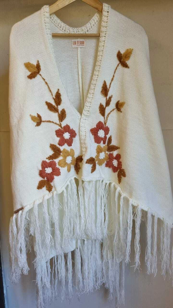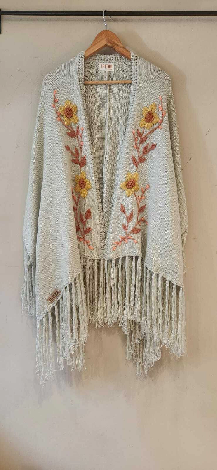 Ruana confeccionada en lana con bordado super artesanal.