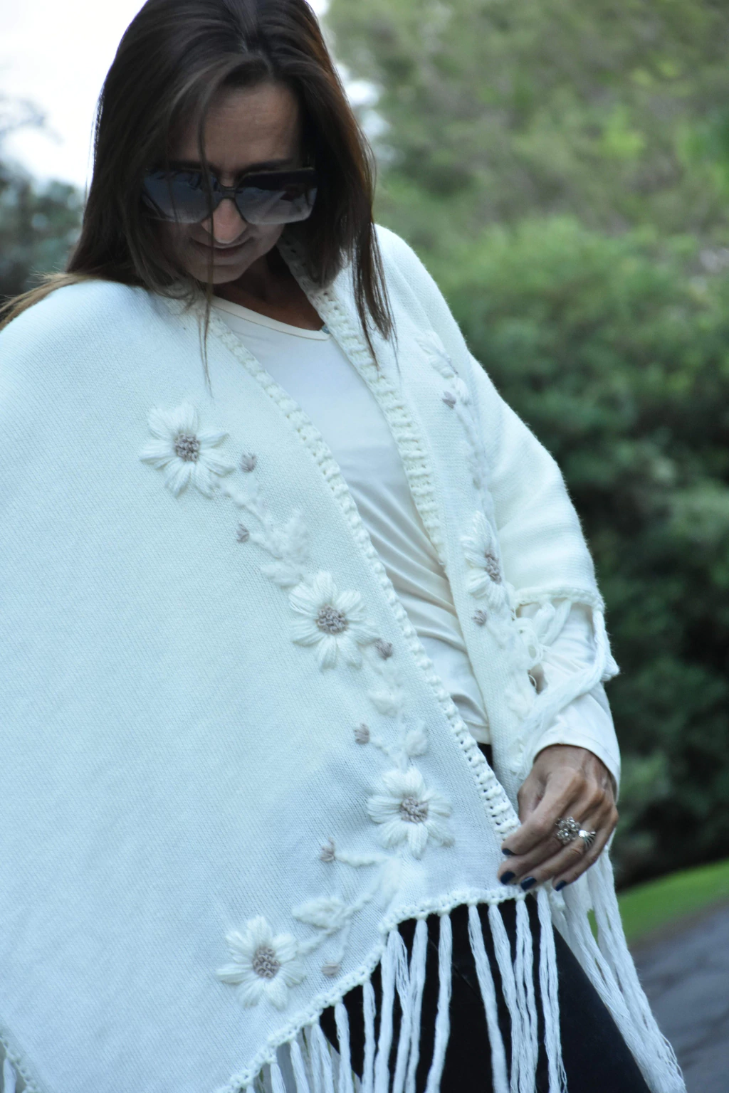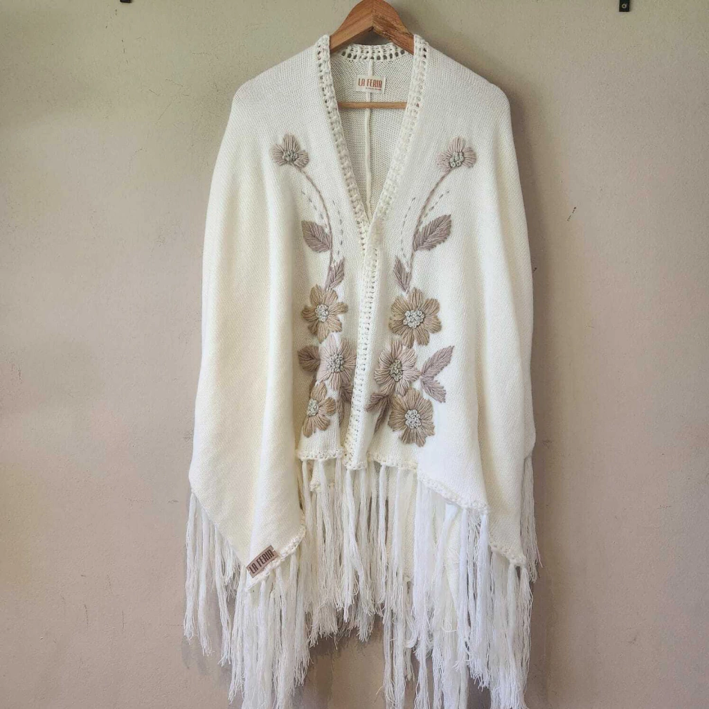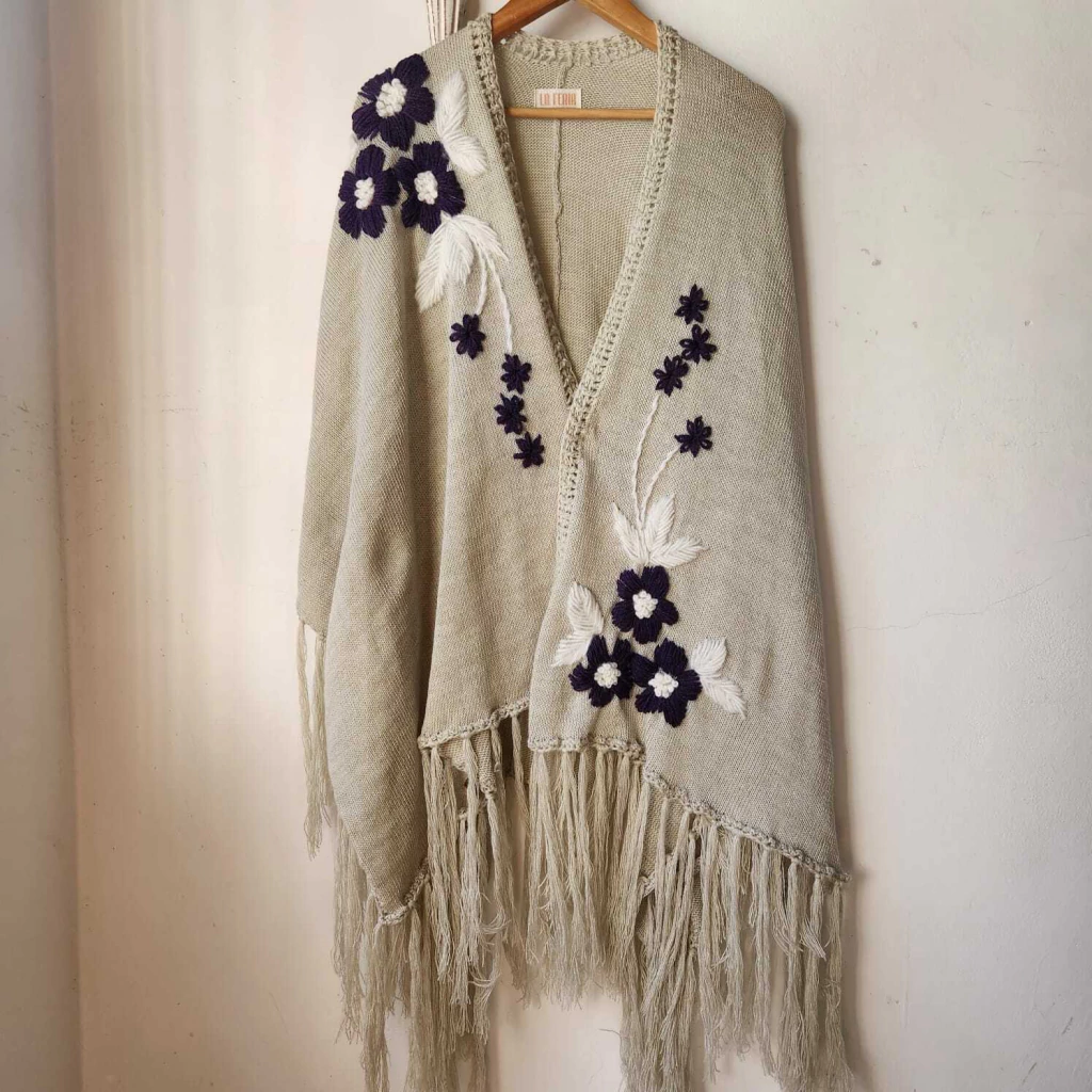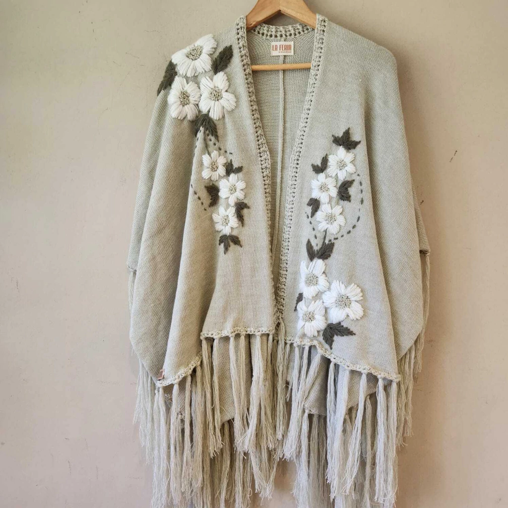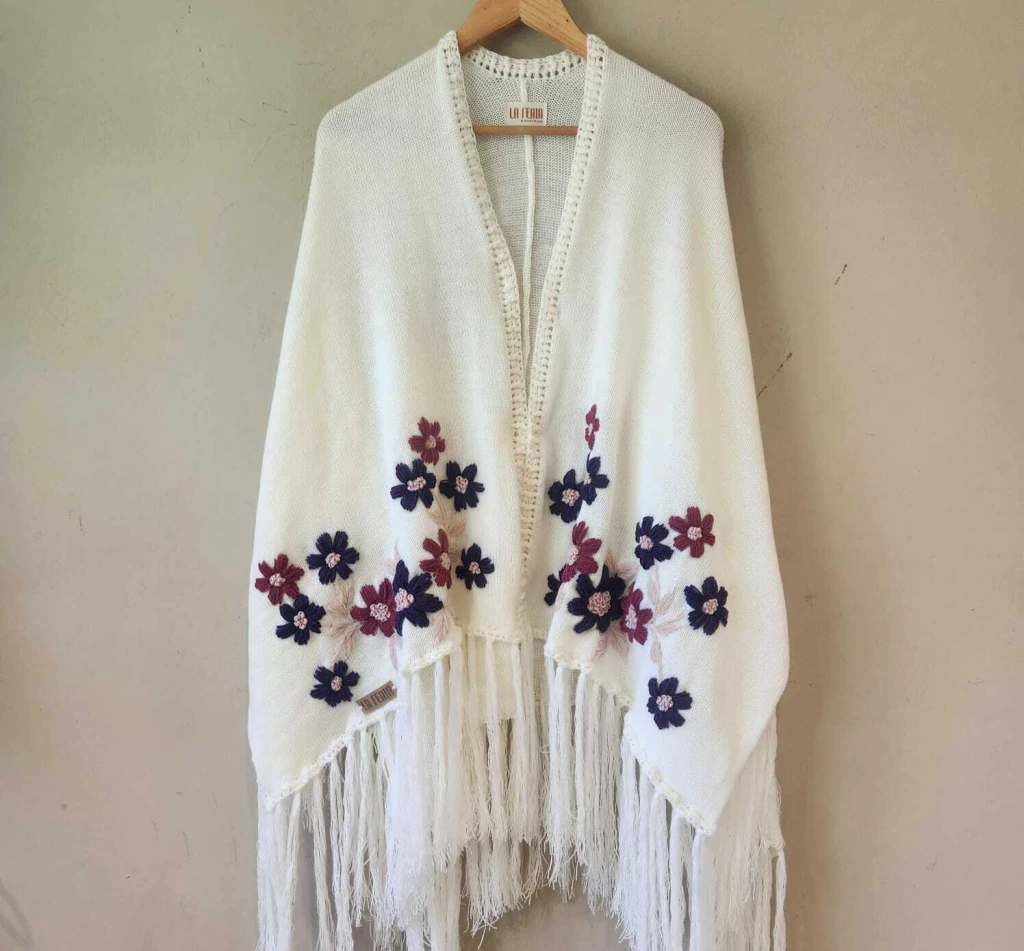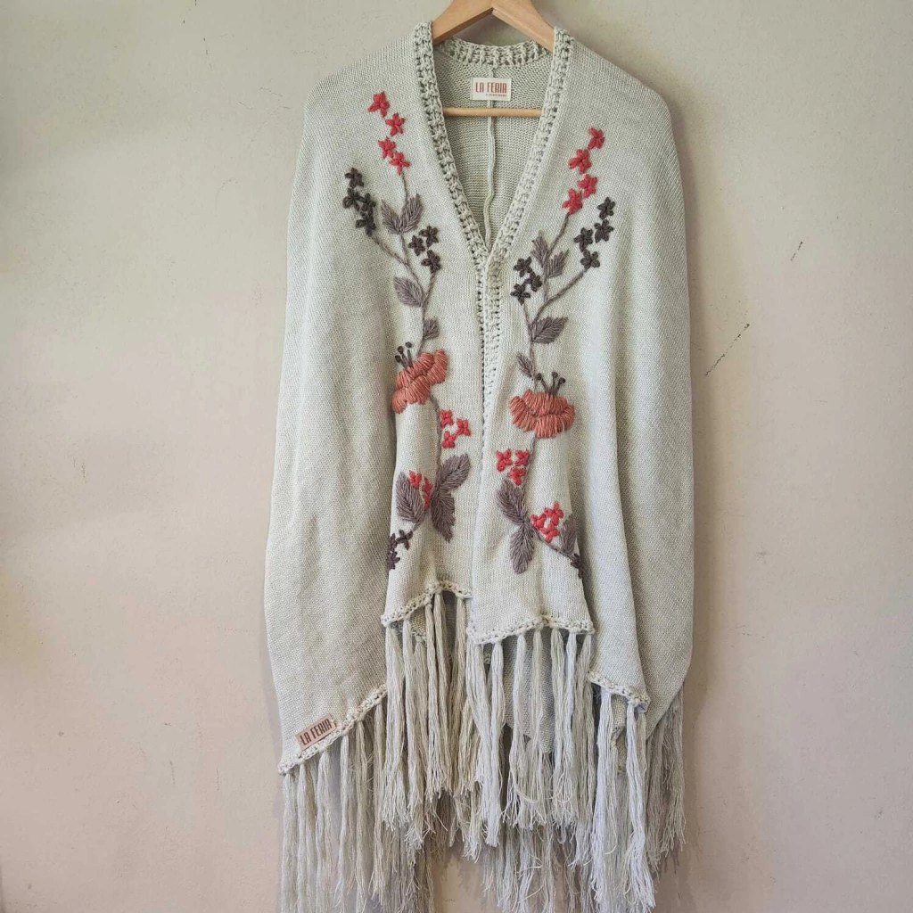 Ruana confeccionada en lana con bordado super artesanal.