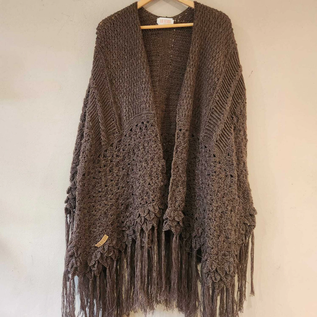 Ruana tejida artesanalmete bajo la tecnica de crochet.