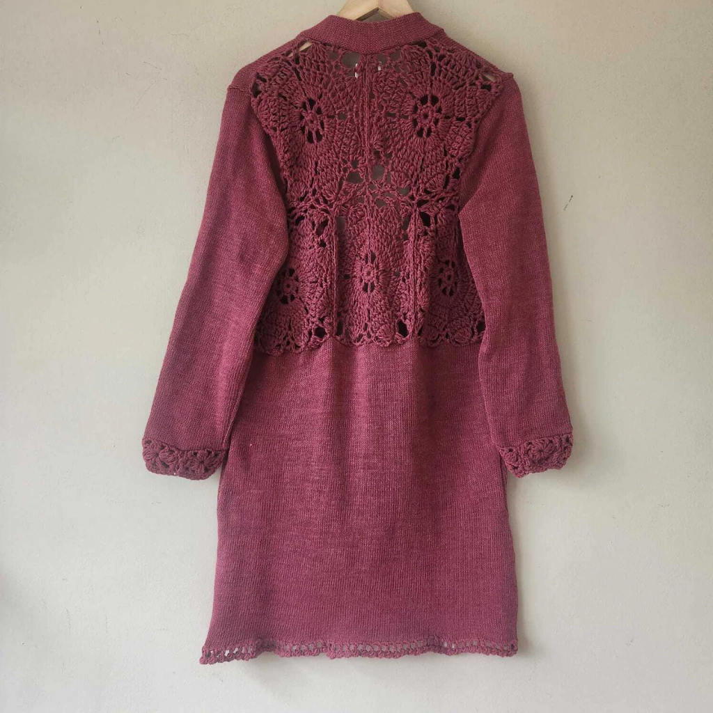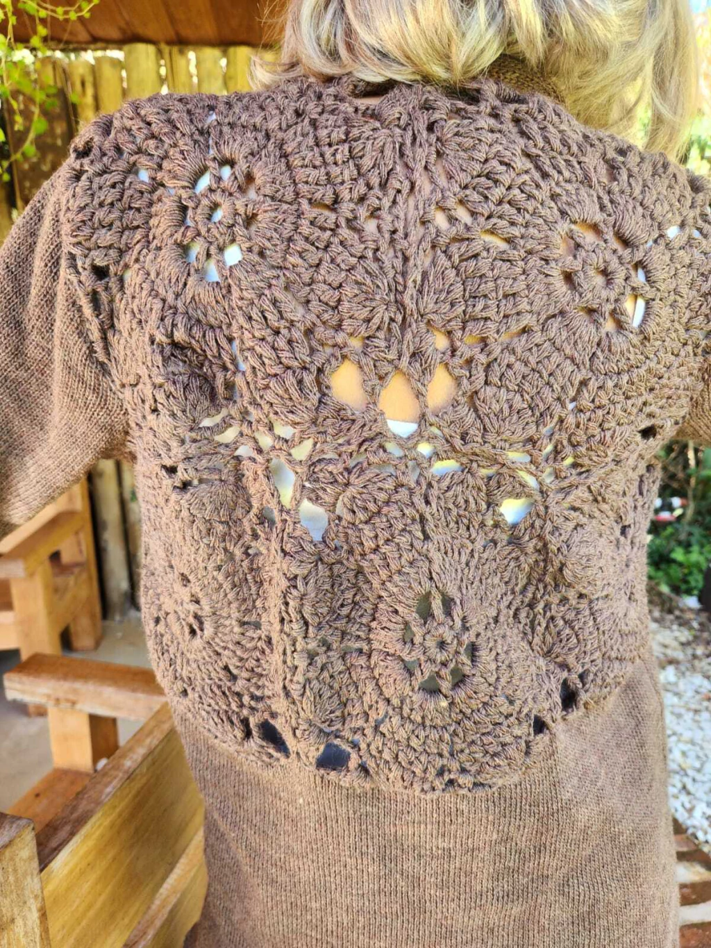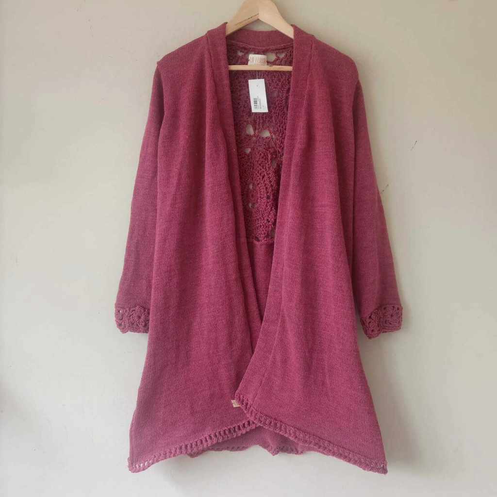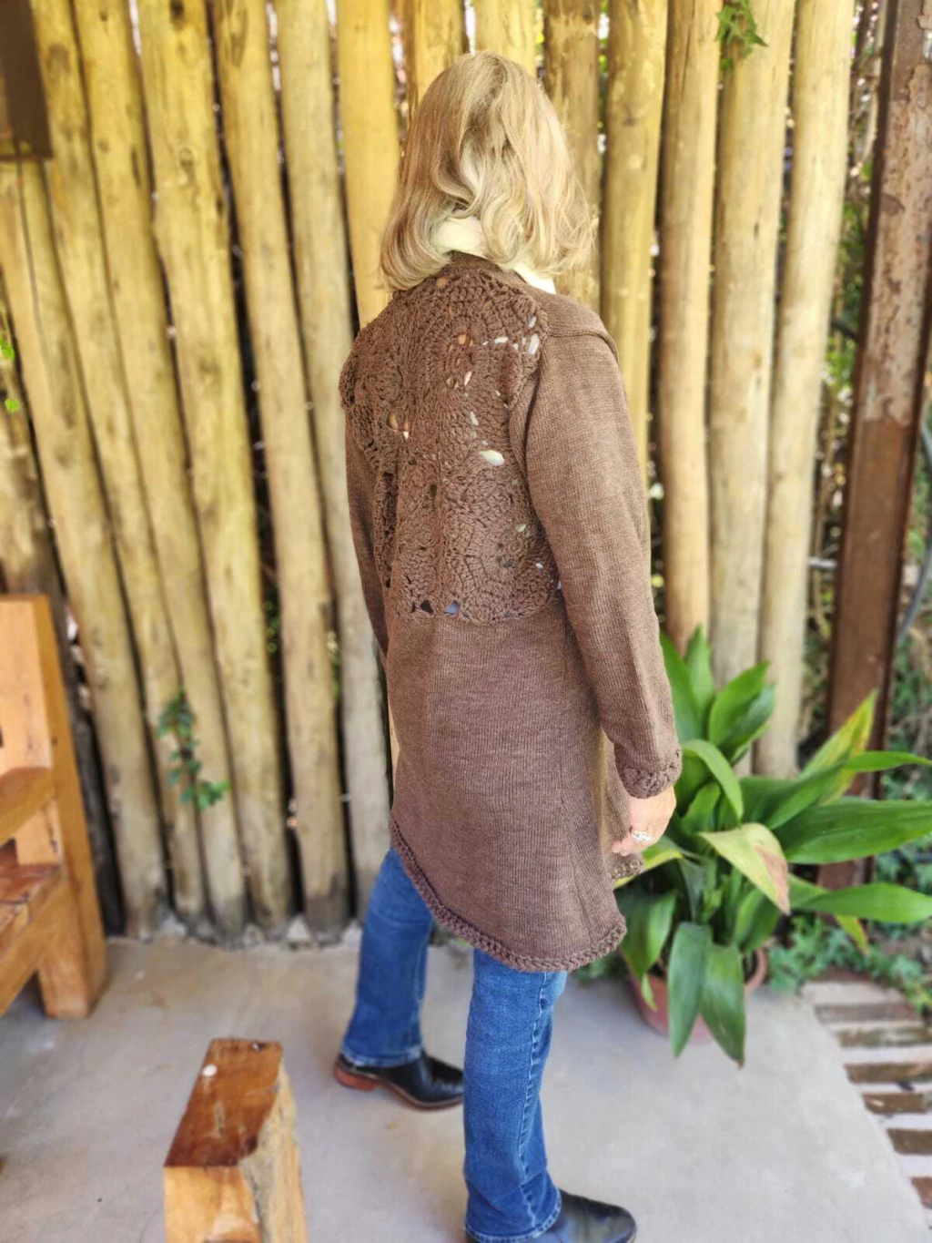 Saco tejido artesanalmente en lana. Con espalda y puños a crochet.