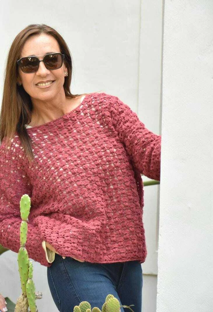 Sweater tejido artesanalmente con la tecnica de crochet. Con un diseño único.